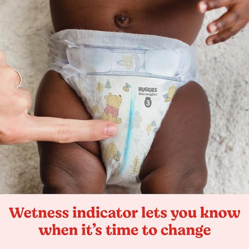 Details: With up to 12 hours of leak protection for your baby’s delicate skin, Huggies Little Snugglers Diapers are our perfect choice for your little one. Huggies Little Snugglers newborn diapers offer gentle skin protection and showcase a curved and stretchy fit with all-around comfort for a gentle tummy fit. Plus, with a soft, pocketed back waistband, these disposable baby diapers help prevent leaks and blowouts while helping keep mess away from your baby's skin. Extra soft materials provide belly comfort and protection from red marks during Tummy Time. Little Snugglers baby diapers are made with a breathable outer cover and are hypoallergenic, dermatologist tested and safe for sensitive skin. Huggies is the only leading brand entirely fragrance free*, our diapers are also made without parabens, lotions, elemental chlorine and natural rubber latex. Little Snugglers also feature a color-changing wetness indicator that lets you know when your baby’s diaper is ready to be changed. Featuring Disney Winnie the Pooh designs, Little Snugglers Diapers are available in size Preemie (up to 6 lbs), size Newborn (up to 10 lbs), size 1 (8-14 lbs), size 2 (12-18 lbs), size 3 (16-28 lbs), size 4 (22-37 lbs), size 5 (27+ lbs) and size 6 (35+ lbs). For the perfect diapering duo, pair Huggies diapers with Huggies Natural Care Sensitive Baby Wipes! (*among leading national diaper brands, across all offered variants)